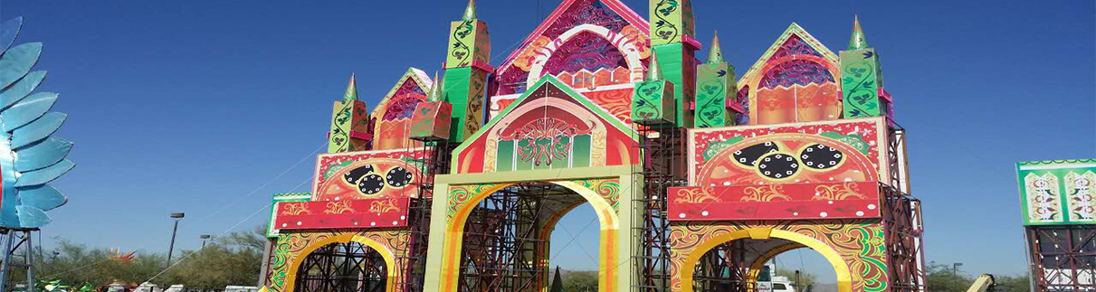四川藝思特彩燈文化傳播有限公司,自貢燈貿(mào)集團股份有限公司舉辦的“世界之光--彩燈嘉年華”將于2016年11月至2017年1月在美國亞利桑那州州府菲尼克斯展出。燈展的近50個集裝箱已于上月中旬全部抵達菲尼克斯,目前燈組安裝、布展工作正在緊鑼密鼓的進行。