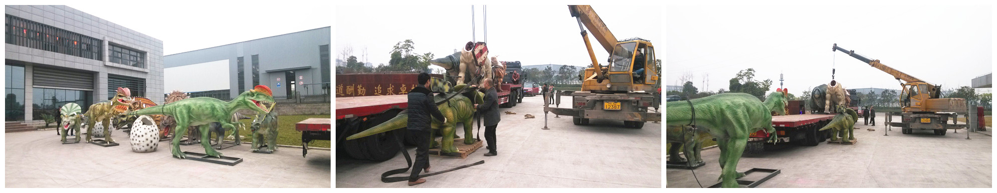 公司工程制作中心和藝思特恐龍彩燈科技有限公司,于元月18日-25日順利完成發(fā)往韓國、山東、成都的大型仿真恐龍、彩燈裝箱(車)工作。此次發(fā)往展出地 的機械仿真恐龍,共計9口箱(車),由于數量多,形體不規(guī)則,尺寸超長(最大體量的恐龍身長達16.2米、身高達9 米),為入箱作業(yè)帶來難度。加之氣溫驟降,天空飄起了密集的雪花,紛擾了現場作業(yè)視線,公司員工不畏嚴寒,配合物流公司箱(車)管員穿梭在場地上進行搬運和裝載,終于在元月25日下午圓滿完成發(fā)運貨物的裝箱(車)工作。