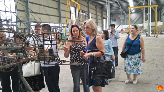 訪問(wèn)團(tuán)一行在集團(tuán)公司執(zhí)行總裁陶建軍的陪同下走進(jìn)東方彩燈出口基地,參觀集團(tuán)公司美國(guó)、秘魯燈展制作現(xiàn)場(chǎng),了解仿真恐龍和彩燈制作流程及工藝。訪問(wèn)團(tuán)與公司有關(guān)人員就城市亮化工程、冬季節(jié)日燈展旅游等展開(kāi)了積極地交流和討論。訪問(wèn)團(tuán)成員對(duì)東方彩燈給予了高度評(píng)價(jià),并希望燈貿(mào)集團(tuán)與瀑布市的合作突破市場(chǎng)層面,實(shí)現(xiàn)多元、多維合作。集團(tuán)公司董事長(zhǎng)劉婭表示燈貿(mào)集團(tuán)將充分借助“2018中加旅游年”的政策機(jī)會(huì)窗口,搭上兩國(guó)文化交流的快車(chē)道,向加拿大民眾展示東方彩燈的艷麗繽紛、美輪美奐。