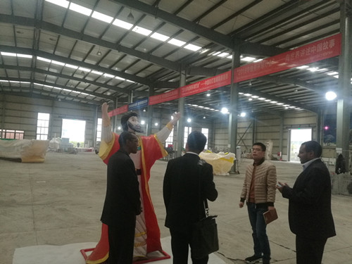 總領(lǐng)事Kebede Abera Ido一行在自貢燈貿(mào)集團(tuán)國韻公司副總經(jīng)理明祥東的陪同下參觀了東方彩燈出口基地生產(chǎn)車間,詳細(xì)了解了彩燈燈品制作、彩燈境外展出等相關(guān)情況。隨后,總領(lǐng)事Kebede Abera Ido一行來到燈貿(mào)集團(tuán)會議室,聽取自貢燈貿(mào)集團(tuán)“東方彩燈·點(diǎn)亮世界”全球巡展項目及公司近年外展情況的全面匯報。