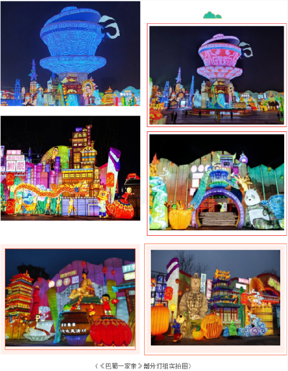 今年,自貢·中華彩燈大世界以“觀自貢燈 過中國年”為主題,550畝展區(qū)、十五大主題、上百組彩燈,給游客們帶來一場自貢彩燈文創(chuàng)新紀(jì)元的視覺盛宴。有800多年歷史的自貢燈會,開啟全新云時(shí)代,將自貢燈會打造成展現(xiàn)時(shí)代風(fēng)貌的大舞臺,讓您足不出戶也能領(lǐng)略“天下第一燈”的魅力!由燈貿(mào)集團(tuán)創(chuàng)意、設(shè)計(jì)團(tuán)隊(duì)等數(shù)百名彩燈匠人歷時(shí)兩個(gè)多月精心打造的《巴蜀一家親》、《自貢記憶》、《五糧液》三個(gè)大型燈組。《巴蜀一家親》薈萃川渝各城風(fēng)貌之靈光,主體以獨(dú)具特色的川渝茶文化代表——蓋碗茶為載體,現(xiàn)代透光材質(zhì)制作憨態(tài)可掬的熊貓,下方高鐵環(huán)繞而行,輔以巴蜀特色元素,將自貢傳統(tǒng)彩燈制作工藝與新技術(shù)相結(jié)合,為游客帶來可看、可聽、可聞的沉浸式的觀燈體驗(yàn)。