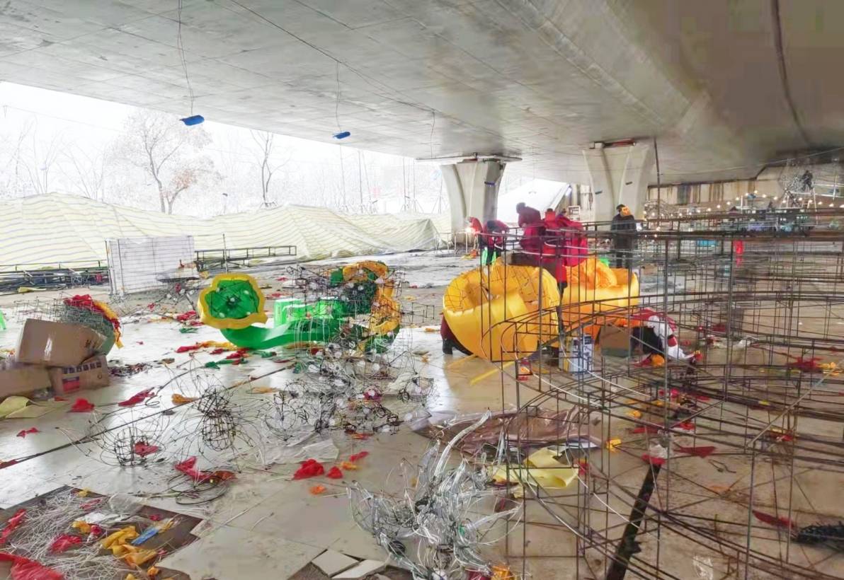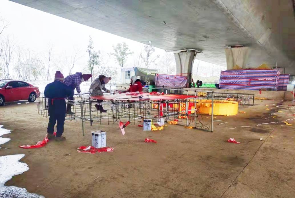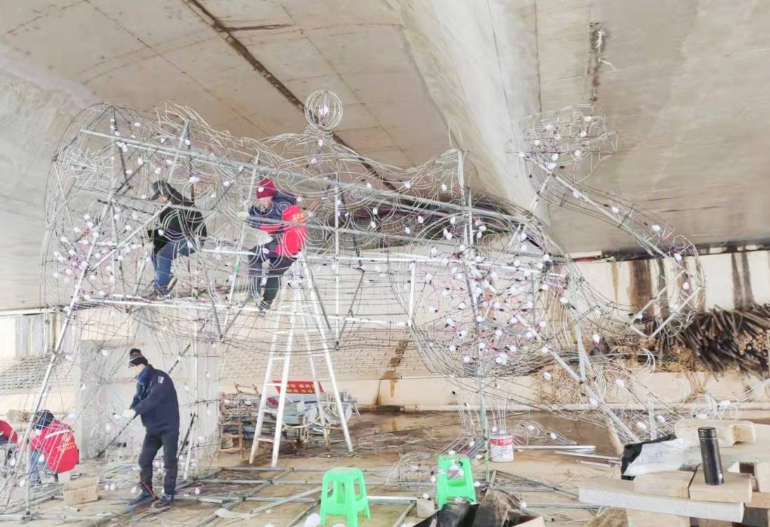 燈貿(mào)集團(tuán)燈組制作團(tuán)隊(duì)從春節(jié)前就已入駐現(xiàn)場。在有限的工期里,幾十名彩燈工匠全天無休,從設(shè)計、放樣、修改、手工裱糊到組裝焊接,每一個步驟都精雕細(xì)琢。