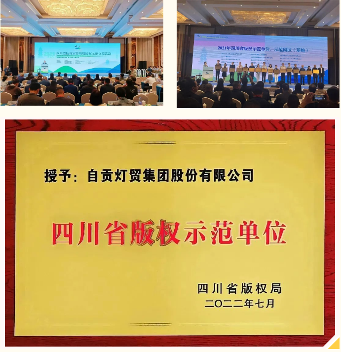 在第23個(gè)世界知識產(chǎn)權(quán)日來臨之際,由中國版權(quán)協(xié)會(huì)、四川省委宣傳部版權(quán)局主辦,綿陽市委宣傳部承辦的“四川省2023版權(quán)宣傳周暨版權(quán)示范交流活動(dòng)”于2023年4月25日在綿陽舉行,活動(dòng)以“推動(dòng)版權(quán)創(chuàng)新創(chuàng)造 助力文化自信自強(qiáng)”為主題,以線上線下聯(lián)動(dòng)方式同步推出。活動(dòng)當(dāng)天,省版權(quán)局為2021至2022國家級、省級版權(quán)示范單位和示范園區(qū)(基地)授牌。自貢燈貿(mào)集團(tuán)股份有限公司參加了活動(dòng),并獲頒“四川省版權(quán)示范單位”榮譽(yù)稱號。